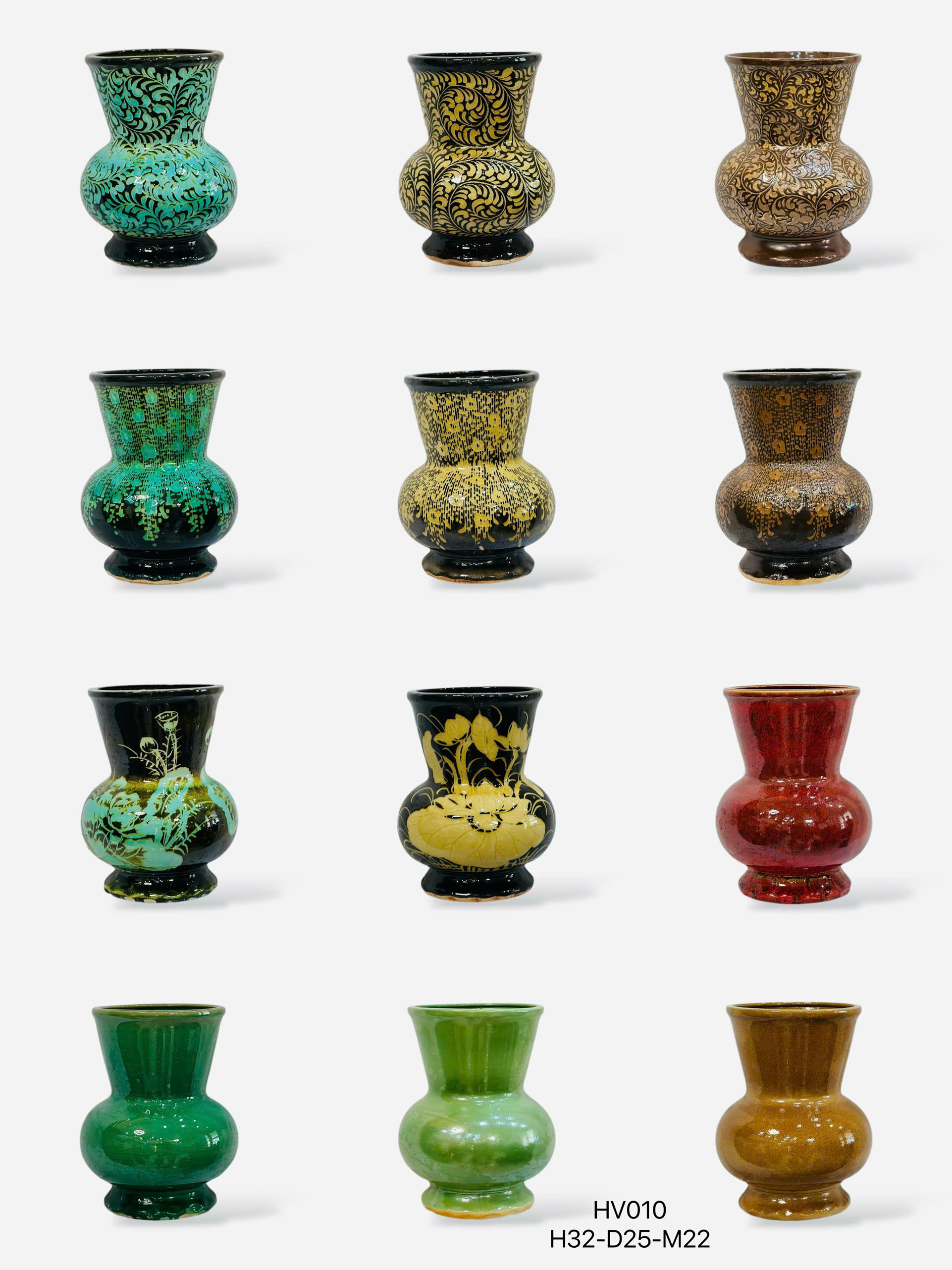 – Màu sắc : đa dạng, men cổ truyền thống Bát Tràng